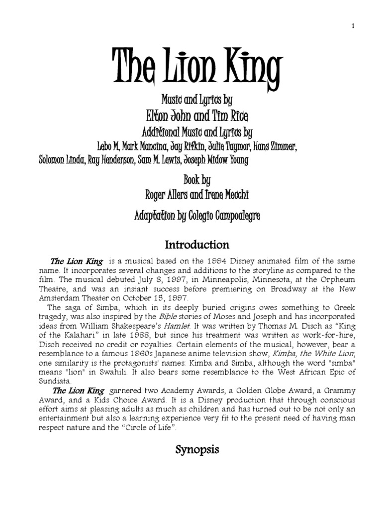 Legend Of The Lion King Script Pdf Leisure Entertainment General